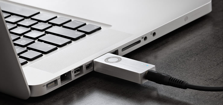 Connect D3 to a USB port on your Mac or PC and send high-quality music to your headphones or any audio system.
