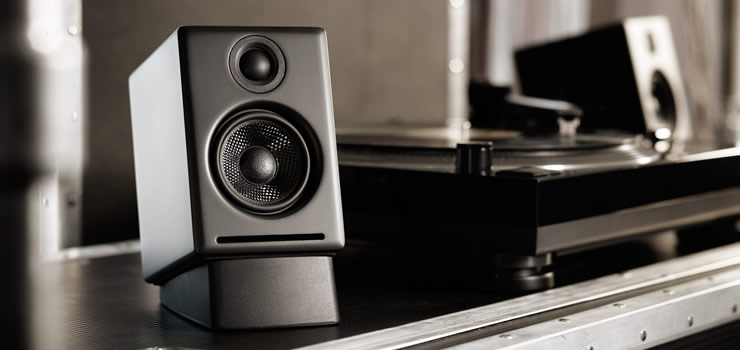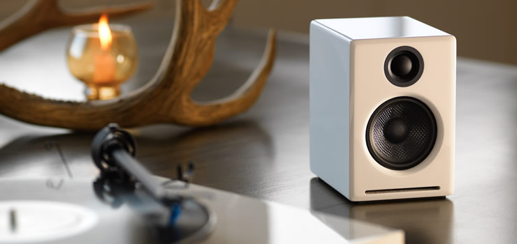 The Audioengine 2+ is about one-third the size of our flagship Audioengine 5+ powered speakers and an ideal size for your desktop or smaller room. We used the same custom tweeters as in the Audioengine 5+, matched them with compact Kevlar woofers, then added high-performance amplifiers with high-quality connectors. All this great engineering is wrapped in wood cabinets with a hand-polished finish to create a premium quality desktop multimedia speaker system that puts all those sad plastic computer speakers to shame!